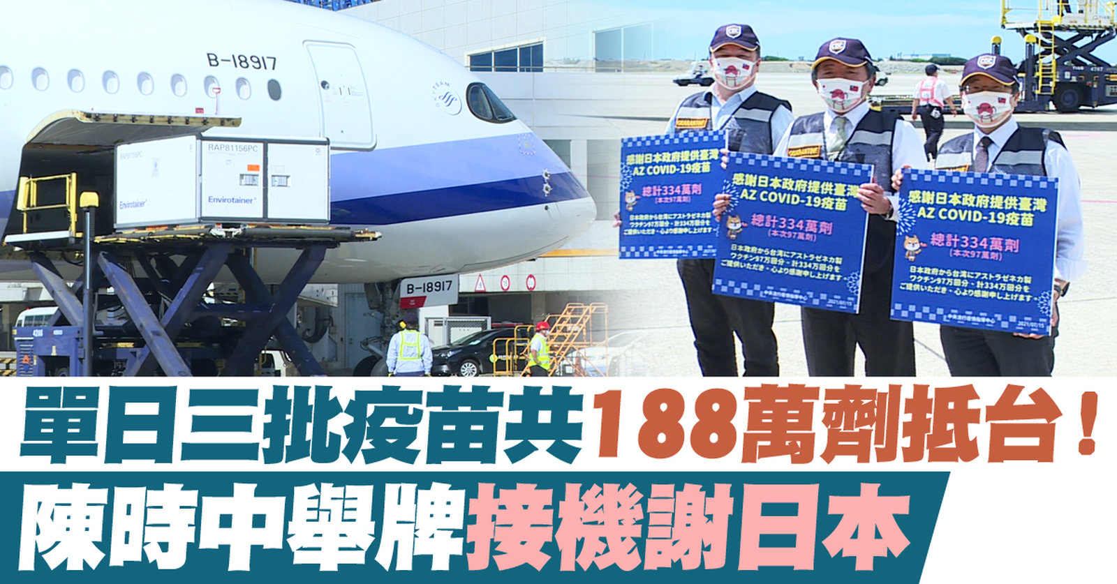單日三批疫苗共188萬劑抵台!陳時中舉牌接機謝日本