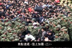 新唐人粵語一週新聞追蹤2008年2月16日(30分鐘)焦點速遞 <雪上加霜 (二)>上集我們講過要減低雪災的災難有三個因素,迅速啟動救援機制,新聞訊息暢通和民眾意見反映自由,同時又講到中共在天災後加上人禍,令到受災的中國老百姓雪上加霜,今集我們繼續講下去......=============《九評效應》專欄=============在大紀元网站宣布退党的人數直至到北京時間星期六已超過3235萬。 <每日精選>*********星期二---------諾貝爾獎得主婦女倡議團、一些國家的奧林匹克運動員和政界人士向中共主席胡錦濤發出公開信,呼吁北京履行奧林匹克和平与國際合作的精神,利用對蘇丹政府的影響力,幫助制止達爾福爾民族清洗。---------2月12日,美國總統布殊在白宮會見了馬里總統杜爾。兩國總統就國民保健、掃除文盲、在全世界推動民主与人權及反恐等問題交換了意見。---------*********星期三---------美國總統布殊星期三簽署經濟刺激方案,美國國會參眾兩院近日通過了該方案,目的是通過退稅和鼓勵商業投資以避免美國經濟出現衰退。---------美國荷李活著名大導演、奧斯卡獎得主史匹堡星期二表示,中共沒有做出足夠努力,結束蘇丹達爾福爾地區的暴力殺戮,他將辭去2008年北京奧運會藝術顧問職務。目前,在華盛頓的中共駐美大使館間接回應稱,某些組織和個人將達爾福爾和中國聯繫起來是完全不理智和不公正的。據了解,中共一直是蘇丹最大的武器供應商。---------*********星期四---------美國總統布殊將于2月15日展開非洲五國的訪問,他表示此次訪非的重點將放在幫助非洲抗擊貧困和疾病方面,并誓言全力支持非洲。---------美國聯邦儲備委員會主席伯南克星期四說,美國經濟前景顯示發展緩慢,最近几個月的經濟惡化。另一方面,美國政府的報告顯示,2007年美國的出口創記錄,使貿易赤字降低了6.2%,是自1991年以來的最大年度降幅。---------*********星期五---------2月15號,美國警方公布了北伊利諾大學槍擊案的凶手是曾經在該校就讀的學生斯蒂文.卡茲米爾扎卡。 同一天美國總統布殊表示,在校園槍擊事件發生后,他已經打電話与該大學校長取得了聯系,并向校區和受害者家屬慰問,對受害者表示哀悼。---------盡管科索沃尚未宣布獨立,迫不及待的科索沃人已跑上街頭,在科索沃与塞爾維亞邊境城市米特羅維察歡聲慶祝。---------澳洲總理陸克文抵達東帝汶首府帝力,對該國展開旋風式的訪問,并巡視了駐扎在東帝汶的澳洲部隊。在本周初,東帝汶總統和總理遭到叛軍刺殺未遂后,陸克文的到訪顯示了澳洲對東帝汶政府的支持。---------*********