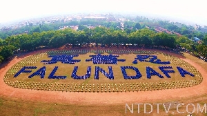 逾六千法輪功學員巨型排字 寧靜中展殊聖