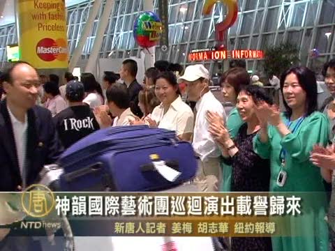【新唐人2009年4月29日訊】以弘揚全善全美的中國傳統文化為宗旨的神韻國際藝術團,今年在美國、韓國、日本、臺灣、澳大利亞、新西蘭等國家進行了總共120多場巡迴演出,於昨天(4月28日)晚上回到紐約,受到紐約觀眾的熱情歡迎。請看詳細報導。