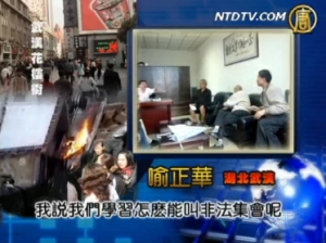 主持人:觀眾朋友們大家好,歡迎收看百姓話壇節目。上回我們說到武漢市花摟街強拆事件。政府為了阻止群眾的依法維權活動,把法律玩弄於鼓掌之間。下面,我們來就來看一看事件的發展。 喻:我說,我當時跟這個公安局的這個治安隊的說,我說你們不要這樣搞嘛,我是學習物權法,憲法,你可以監督我們啊,我又不是搞集會啊?你怎麽把它判作集會呢?我說這個政府不對了,我說我們學習怎麽能叫非法集會呢?他說集會就是你學習以後,要不要發表個人的意願呢,發表你的意見呢,發表你的看法呢,你凡是發表意見發表看法就叫集會,他說。 花樓街派出所黃所長:在苗家碼頭聚會,剛才你說到的學習法律什麽的,上級公安機關定性為非法集會。 花樓街居民:哪一個法律,依據呢?你剛才說的,學習你把它定為集會…… 花樓街派出所黃所長:上級公安機關認定它為非法集會,那我們作為基層公安機關就要執行上級公安機關的決定。 主持人:星期三是武漢市花樓街南二片居民自發形成的法制學習日。這樣的學習已經持續了兩年多。今年的4月15號晚,同樣是星期三卻是一個不平靜的夜晚,據居民透露,約有200多名員警突然出現參加了當晚的學習,隨即法制學習班就被宣佈為非法集會。 這是花樓街居民在花樓街派出所集體簽名,申請繼續舉辦法制學習班時的場景。抱著對政府遊行集會自由承諾的最後一絲希望,老百姓都按照程式依次簽了字,緊接著花樓街的維權代表們正式向派出所遞交了法制學習班的申請表。 花樓街維權代表與武漢市江漢區公安分局治安大隊隊長李信的談話: 花樓街居民:懂法了才會守法, 花樓街居民:哎,守法了就不犯法! 李信:你這個學習是在一個公共場所集中起來學習就是一個集會的性質,跟你說了這個意思了唦。 花樓街居民:那不在公共場所, 在家裏可以呢? 李信:在哪個屋裏? 花樓街居民:在我屋裏。李信:你這寫的不是屋裏...... 花樓街居民:可不可以呢? 花樓街居民:那就不需要走那個程式了? 李信:是路上還是屋裏,你先說清楚?花樓街居民:如果在屋裏能不能定為非法集會呢? 李信:在屋裏你再從新寫個申請我們再答復你,我們一事一答復,你不能扯到答復,怎麽答復? 花樓街居民:我們在拆遷的房子裏,可以吧?拆遷蠻多的房子還沒拆,拆完了後, 上面的還沒有走,底下的空位置? 李信:你提出個申請,提前五天……花樓街居民:這寫了申請唦?李信:你聽我說,提前五天不是你這說的一三五, 你要具體日期。 喻:拆遷,這混混黑道,這麽混亂,他要保護他的黑惡勢力,他讓你學習嗎?你學習起來的話,你把群眾就會武裝起來,就會和他發生對抗嘛,所以憲法裏面的言論出版自由,是不是自由啊?這是考驗他們的時候了。 主持人:無論是屋裏還是街頭,舉辦法制學習班的申請結果似乎是意料之中的。 喻:結社啊,出版自由,言論自由,集會自由啊,遊行自由啊,我跟你講,在我們這個地方,遊行沒有哪個批過,你就是要遊行,他也不批,集會也很少批過。 主持人:雖然法制學習班被停了,但是作為花樓街知名維權人士的喻正華老師,卻因為多次出頭為百姓鳴不平被列入特別關注的名單。 據說,派出所的員警不久前還揚言如果喻老師繼續發聲就會讓他“失蹤”。 喻:對我是特別的監視,在我的二樓,設了一個專門一個辦公的點一樣,有一個公安,我一下樓,他就在後面跟上了,我走到哪個地方,他就跟到哪個地方,人身沒有自由,我起早點,我7點鐘,他還來的早些,好象星期三到了,他怕我有行動了,他就7點鐘就來了。 主持人:據透露,跟蹤喻老師的便衣當中包括當地司法處工作人員,江漢區公安分局民警以及花樓街街道辦事處人員。(錄影)喻:"跟著我們呢!" 喻(對員警):“你跟到哪里?我要你保護?我有我兒子保護,你要麽樣?你跟我搞麽斯? 我走到哪里他跟到哪里!” 主持人:針對喻老師憤怒的投訴,花樓街派出所黃所長的回答則令一般混混都自愧不如。花樓街派出所黃所長:老喻說限制老喻的人身自由,你出去沒有不讓你出去,進來沒有不讓你進來,誰阻止了,你可以報案。 喻:那我的人身自由到哪里去了? 花樓街派出所黃所長:您到哪里去,你要去買菜也沒有不讓您買呀,你要到哪個屋裏去也沒有不讓你去啊,我只不過說個蠻醜的一句,.我前天在前頭走你在我後面走,你是不是對我的限制? 喻:不止一次。 花樓街派出所黃所長:這個問題是個個性問題。 主持人:眾所周知,九十年代以前在中共統治下,無論什麽人,在各種登記表或人事檔案中,必須填寫 “家庭出身”。追溯祖宗三代的政治面貌,確認隸屬於哪一個階級?所謂出身不好的人,則飽受岐視和打擊,沒想到這種荒唐的整人手段,仍被延續至今。 喻:我想讓你們看一看那個天涯時空(網),天涯時空裏面有他們國安局,內保局的,他們寫我的文章,我所認識的喻老師,他把我的家庭情況麽斯情況都寫上去了,有個巫局長,武漢市江漢區公安局的巫局長,他公開在馬路上宣佈我的家庭出身,他就講你出身國民黨什麽的,你父親麽樣麽樣…… 程:他就是這樣的。你象我們的電話,你象我們的人身,都被他們監控了,兩年了,都是監控了!你要是幹的事要是好,你怎麽怕別人跟別人講呢,對不對?你看,你肯定見不了陽光嘛,對不對?我現在想養家糊口,被他們拆遷搞得把我家都差不多要搞垮了! 主持人:政府執法犯法,輿論能夠監督嗎?答案很簡單。 喻:南二片的拆遷呢,違反法律,違反政策,我也向北京焦點訪