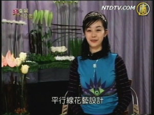 【新唐人2009年7月31日訊】平行線這個字是源自於希臘的古字,意思就是並肩的、並行的,就像我們看到的鐵軌是兩條永遠不交叉的線。在花藝作品裡平行線花型要表現的是一種韻律的感覺,也就是節奏感。