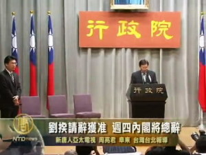 【新唐人2009年9月7日訊】臺灣行政院長劉兆玄7日下午宣佈請辭並獲得批准,週四將正式率各部會首長內閣總辭。由於八八水災救災不力,飽受外界批評,劉兆玄表示他已經完成階段性任務,應當負起政治責任,同時感謝馬總統力挺與各界支持,最後他以天祐中華民國、天祐台灣人民結束談話。
