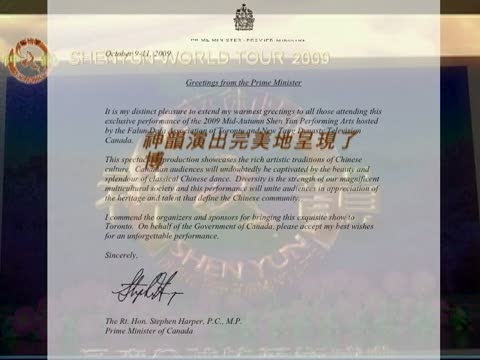 【新唐人2009年10月2日訊】10月9號,神韻即將在多倫多上演,加拿大總理哈珀為此專程發來了賀信,請看報導。