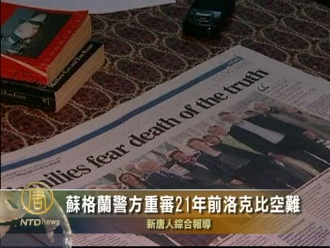 【新唐人2009年10月26日訊】10月25日,英國蘇格蘭警方宣佈,將通過數條線索重新調查21年前導致270人死亡的洛克比空難案件。之前兩天,空難受害者家屬曾到英國首相府遞信,要求對洛克比空難重新進行獨立調查,公布更多有關空難的真相。