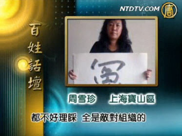 主持人:觀眾朋友們,大家好,今天到我們百姓話壇節目來做客的是來自上海的周雪珍。十六年前的周雪珍是兩個工廠的老闆,有幾十名工人,就在她生意蒸蒸日上,準備投資數百萬元建第三個廠的時候,一場車禍改變了一切。周雪珍:我現在是上海市寶山區今年55歲,93年我5月29號發生了一個車禍,15噸的羅曼大卡車把我壓殘疾了,我先開一個廠,一個玻璃儀器廠,剛建立成功啊,230萬投資下去啊,後來5月29號發生車禍的﹔好了全部報廢,230萬,93年的230萬到現在甚麽價格?主持人:車禍造成了周雪珍身體的嚴重傷殘,但是上海市寶山區公安局副局長金龍法對肇事車輛卻袒護包庇,導致了周雪珍無心經營自己的企業,致使剛投產的玻璃儀器廠因無法正常運轉而倒閉。周雪珍:我腰三節壞掉,肋骨壞掉4到9根,包括這一個正手全部壓壞,手指甲都沒有的,我傷到這個地步,他們沒有報導上面,根本沒有把我當重傷的車禍處理,寶山公安局開的後門,軋我的對方是淞南村的,就是一個公安局的副局長就是淞南村的,叫金龍法(音),他們當地的老百姓告訴我的,他講金龍法(音)就是副局長,他們花了5000塊,後來又花了4000塊買通了,你這個車禍沒有人給你作見證,他們正好在分房子的時候,誰作見證誰房子就沒有,沒有一個人敢作,給我當面作見證,而且他們在作偽證的有,我自行車有32個平房的一個塑料地毯,知道吧,我推著走,他講我騎在這個車子上,騎的飛快,和車子搶道,實際這個車子推也要有本事,不要講騎。駕駛員就講了一句真話,他講我在發動車子的時候,沒有看清,這個駕駛員也受到侮辱,給這個單位裡面也搞得挺厲害。主持人:車禍問題沒有得到公正的處理,應有的補償周雪珍也一直沒有得到。2006年,她的家位於邊防檢查站租用地的住房又面臨拆遷。周雪珍只有借錢去別處買房,新房才剛剛找到,還沒來得及搬進去,原住房就遭到邊防檢查站的強拆。周雪珍:造了370來個平方,他們要這個地塊派用了,我在9村一百九十幾號,全部看好了,我不管怎麽樣把這個房子,買好房子把這個東西再搬過去,準備是計劃這樣,應該就是講,你要拆的話,你最起碼跟我談妥,給我安置,把我家裏的東西拿出來。是強拆的話,也要有法律的手續,由我們寶山區的政府甚麽法院甚麽,他甚麽都沒有,把我兩個電話全部線剪斷,先把我所有通訊路剪斷,反正家裏沒有電已經早就沒有了,水也斷掉了。邊防檢查站來來了270個兵,還有武警,有防暴,反正有領導吧,在那個時候我身上就一套,穿了個睡衣睡褲,6個人把我撳在地下,渾身踢的都是傷,把我身下小便都踢壞掉,我就叫救命啊救命啊,他們領導講,把她嘴封住,小兵口袋裡拿出來那個封條帶,就把我嘴封了三條。我女婿睡在樓上,我女婿開出租車的,開個通宵早上才回家,大概7點多鐘到家洗好澡,剛睡著,就發生這個事情。他們幾個人把我女婿從樓上抬出來,就一條短褲,就一條短褲,他晒了一天,把我四個月大的孫女,四個月零十天,正確的數是,來了一幫人把我女兒手上的小孩去搶,把小孩身上的衣服全部拉破掉,看好小孩就要拉兩段了,我女兒就沒有辦法就放手,小孩就呆掉了,小孩嚇的直到現在將近4歲了,晚上聽到一個聲音噗通一聲響就哇哇直叫,哭個不停,直到現在還是這個樣子,看了好多醫生看不好。就是那個時候房子倒下來,“啪”就在旁邊哭,小孩又給他搶,又把房子爆掉,那個時候小孩就嚇得呆掉,一聲都不哭啊,沒有哭一聲,現在小孩就這個後遺症。在這個時候一家子都搞得病了,我們晚上都沒有睡的地方,就在一個人家剛建好的理髮店,牆還沒粉,就牆漆好,我們就放個靠背椅就躺在那邊,我真的多少天我都沒有睡過,我的女婿我的老公,我老公那個時候已經今年68歲了,我老公是文化大革命給共產黨整的傻了,他沒有敢叫一聲,我說你笨不笨呀,在大門口你不叫救命呀,他講我已經呆掉了,我的女兒女婿反正都給他們頭拷住,手銬住,電影裡面放出來的抓壞人,那天我們一家就是給他們這樣鎮壓,他們根本上沒有人性的。主持人:家被野蠻強拆後,周雪珍開始四處上訪,從上海跑到北京告到了公安部。協商到最後雖然沒有拿到正式的賠償,卻意外被“救濟”了52萬元。周雪珍:就想辦法告他們,寶山區的所有的人大,檢察院,區政府,市公安局,市政府,檢察院都到,沒有一個人理的。到07年的7月份吧,周永康要陞官的前面吧,在寶山公安局作的筆錄是賠償我52萬,到市公安局救濟我52萬,因為周雪珍經濟困難,救助52萬。我不同意。我一生的心血全部在裡面,連我買房子的錢在裡面四十來萬,我全是借來的,我開廠的不鏽鋼有好多,有這個1噸多一點吧,反正我遺下來這個設備,原來開廠的設備,最起碼我一年的錢連設備家產最起碼七八十萬,我的女兒的嫁妝啊,我的一生的東西,反正樓上的甚麽都沒有拿下來,都蓋在裡面,後來去撿垃圾的老百姓外地的民工有幾百個,真的數也數不清的人,你想有誰來管?當兵的走掉了,就是他們扒房子的人全部能拿走的拿掉。你知道我裡面的,那天就是附近撿垃圾的幾個人,一個收廢品的人家,就收了一萬八千左右,一個下午,就一個人家收廢品的一個老闆,廢品啊收到這麽多,所有的東西全部推在裡面,就把我全家丟在馬路邊上。主持人:雖然52萬元的救濟款遠遠不能補償她們的損失,但是周雪珍迫於生計,還是勉強接受了。但是她並沒有放棄申訴公道的權利,她接著上訴上訪,但是都毫無結果。中國冤民大同盟在