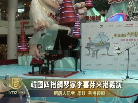 【新唐人2009年12月13日訊】特意來香港的韓國著名四指鋼琴家李喜芽,將連同香港三指鋼琴家黃愛恩等,為四川地震災民義演,並以親身經歷鼓舞人們面對困難。