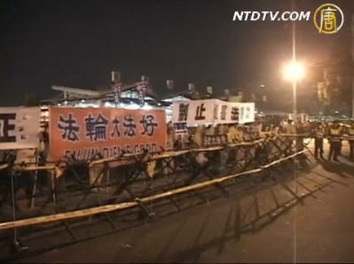 現場音:法輪大法好,制止迫害法輪功