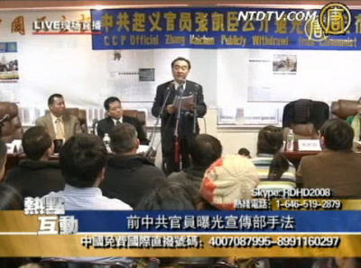 【新唐人2010年1月6日訊】主持人:各位觀眾大家好,新年快樂!很高興又在《熱點互點》直播節目和您見面了。中國共產黨的一個最大的特色就是它非常能夠迷惑人,大家或多或少都被它欺騙過,也都知道它的話是不能夠盡信,但是總是很難在下一次不再上當。就連在國際上曾經受到它打壓、矮化以及被飛彈瞄準的中華民國政府,都寧願再聽一次它的「甜蜜謊言」。那麼中共到底是怎麼做到的呢?是靠「統戰」!宣傳則是統戰工作中非常重要的一環,它是一個龐大的工程。我們想利用今天一個小時的時間,來挖出宣傳當中的一小部分來和大家談一談這個問題。首先我們先看一下影片,這段影片介紹一位在中國共產黨裡面從事統戰宣傳工作長達十幾年前官員的心聲,我們看他怎麼說的?(播放影片)張凱臣:因為我今天重獲新生了。我遠涉重洋,來到大洋彼岸,在此向全世界鄭重宣告﹕從今天起,我要同中共邪黨徹底決裂,義無反顧的真名退出邪教組織—中國共產黨。我加入中共已有二十餘年,而只有在今天,我才開始感到我真的自由了、真實了。不講道義,沒有公正的政黨,是永遠沒有前途的。共黨這架表面錚亮的鐵甲戰車已經失控了,正加速朝著深淵挺進,在這輛車上的人若不及早下車,下場可以想像。人不該立於危牆之下,所以我要退黨。!(影片結束)主持人:剛剛在影片裡看到這位先生,他就是瀋陽市委新聞中心的聯絡部前部長,他在新年期間退黨了。我們今天在現場請到了這位張凱臣先生,張先生歡迎您!張凱臣:謝謝!主持人:另外一位就是大家非常熟悉的深評論員橫河先生,橫河您好!橫河:元慶好,大家好!主持人:我們一開始,因為我們今天很高興可以請到您來,在這麼冷的天氣裡面來跟我們談一下中共宣傳部的工作手法。首先是不是請張先生一開始先簡單的介紹一下您自己。張凱臣:好的。我是1985年加入中國共產黨,至今黨齡也有24年了。我1995年正式調入中共瀋陽市委宣傳部瀋陽市新聞中心,任聯絡部部長工作。這個新聞中心在全國的城市成立不是很多,它主要突出的職能就是對外宣傳瀋陽,協調聯絡省機關單位和中央省新聞單位駐瀋陽記者站,搞好對外宣傳瀋陽的工作。我從1995年到2003年任了9年的聯絡部部長,2004年到2006年2月調到中共瀋陽市委宣傳部新聞出版處繼任兩年,主要負責中央省市三級黨報黨刊的行政發行工作;同時也是主控市屬的媒體,包括一些系列台、系列報、子報、子刊。從我兩段經歷來看,我既體驗了和中央省新聞打交道的經歷,同時也有直接主控管理接觸市屬媒體這麼一個工作經歷。我想我來談今天的話題好像有點得天獨厚。另外我從2006年2月組織安排我到中共瀋陽市委機關報《瀋陽日報》報業集團報刊圖書發行總公司任總經理助理工作。瀋陽市是省會城市,我在市一級的黨的系統裡體制內工作,也有15年的時間。要從我74年走入社會做團級幹部、團(總支)副書記和團支部副書記算起,到市級的體制內工作,也有35年體制內工作的經歷。我總體就這麼個情況。主持人:我想各位觀眾朋友也希望說張先生您一定有很豐富很精彩的故事,您自己的一些事情能夠拿出來跟觀眾朋友們分享。我想我每次都喜歡這麼講,十幾年前剛來到美國的時候,在美國的華人社區裡,我們都喜歡看看中文電視,它都有放台灣來的新聞跟中國來的新聞。這個新聞你看久了之後覺得奇怪,怎麼新聞裡面好像看到台灣都是一些社會亂象,立法院裡面怎麼怎麼亂,然後看大陸的新聞都講得很好,說什麼「祖國」發展如何如何的越來越好,都是這麼樣的一個情況。請張凱臣先生講一下,這些東西是不是中共所謂的一個統戰手法?然後我們順著這個話題講下去,請您介紹一下宣傳部或者從中宣部以下,它的主要的職能是什麼?像我剛剛舉的這些例子,我們在海外的華人看到的是不是它精心策劃出來的結果?張凱臣:是的,你說的非常有道理。我覺得就自由社會和專制社會表現是完全截然不同。就拿我們中國大陸來說,它所說的正面東西很多,所謂沒有什麼亂象,應該嚴格來說是我們黨中央的功勞,也是我們宣傳部門的功勞。因為我們按照黨中央的指示,牢牢的控制新聞輿論的指導權,控制媒體。不是我們沒有負面的東西,也不是負面的東西少。比如台灣或是美國,一有點事情因為有新聞自由就報出來了,可能是一個月發生兩件事都報了,就顯得負面的東西很多。大陸一年可能發生一萬件事,它一件也不報或者報這麼一、兩件,其它寫的全是正面的東西很多。根據我的工作經驗我體會,中共的宣傳主要是通過一個大手段,產生一個大功效,達到一個大目的。它的大手段就是「控制」,就是控制媒體、控制輿論,是有令則行有禁則止,該上的上該下的下,這個該不該不是事實根據該不該,而是由黨的意思來決定它該不該;一大功效就是「洗腦」,包括給媒體洗腦,也給民眾洗腦,達到一黨專制的目的。這個一黨專政根據中共建政60年的歷史來看,有時候表現一黨專制是表現黨裡面的黨魁極度極權,表示他個人的專制,他的影響大一些,手段的成份更大一些。有的時候表現在少數人組成的寡頭集團,我給他取名叫寡頭幫份子。總之就是通過這個媒體,這麼個大手段產生了功效來達到了這個目的。因為我體會,一黨專制是中共的命脈、命根子,它之所以大逆不道,受到全世界愛好自由民主、獨立人士的反對,就是它倒行逆施,堅持一