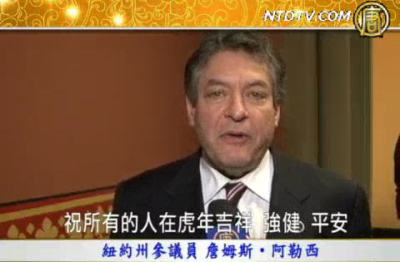 【新唐人2010年1月31日訊】紐約州參議員詹姆斯‧阿勒西(James Alesi)賀華人新年祝所有的人在虎年吉祥 強健 平安