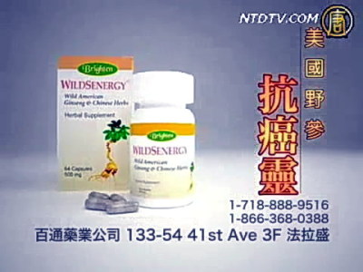 【新唐人2010年2月11日訊】以美國野山參為主要原料配置而成的美國野生抗癌靈,比美國野山參和純中藥單獨使用效果強20-25倍。銷售熱線:718-888-9516/1-886-368-0388,百通藥業公司地址:133-54 41st Ave 3F 法拉盛。