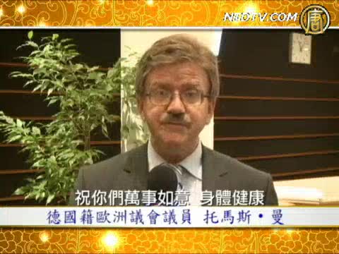 【新唐人2010年2月16日訊】德國籍歐洲議會議員Thomas Mann賀華人新年祝你們萬事如意,身體健康,生活愉快,融入社會,最重要的是人們要友好共處,軍隊和警察不能解決問題。我堅信民主、自由和友誼。