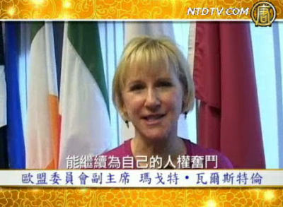【新唐人2010年2月17日訊】歐盟委員會副主席Margot Wallstrom新年賀辭祝每一個中國人新年好,也特別祝願中國的婦女新年快樂。我希望中國的婦女們能繼續為自己的人權奮鬥。