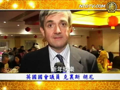 【新唐人2010年2月19日訊】在此我祝願英國和英國以外的所有華人新年快樂!虎年將是偉大的一年,將會有戲劇性的改變,我今晚很高興在這見到許多人來自華人社區,他們將會融入到這一巨大的變化中。