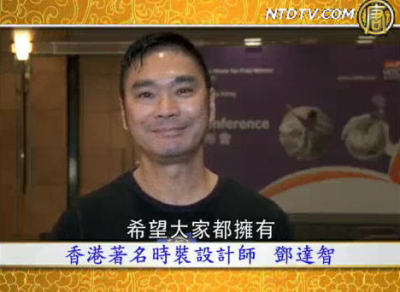 【新唐人2010年2月20日訊】香港著名時裝設計師鄧達智賀年恭喜大家新年健康快樂。我想生活裡面,健康和快樂是最重要的元素,希望大家都擁有。