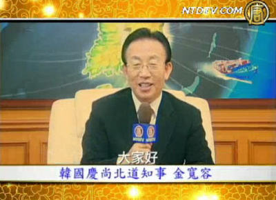 【新唐人2010年2月21日訊】韓國慶尚北道知事金寬容向觀眾拜年全世界新唐人電視台的觀眾朋友們,大家好,我是韓國慶尚北道知事金寬容。2010庚寅新年是生機勃勃的白虎年,我滿懷期待在這裡向大家問好。您如果想要了解韓國,就要先來慶尚北道看看。如果您要來韓國旅遊,就請到我們慶尚北道來,您在這裡就能看到韓國中的韓國。並祝大家家庭幸福,新年快樂。