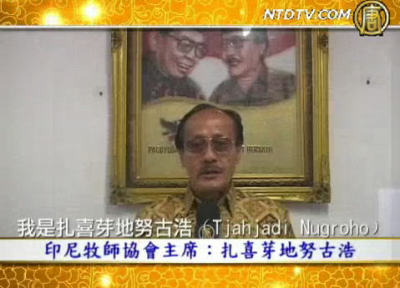 【新唐人2010年2月21日訊】印尼牧師協會主席Tjahjadi Nugroho賀年祝全世界華人新年快樂!恭喜發財,萬事如意,身體健康,世界和平。謝謝!