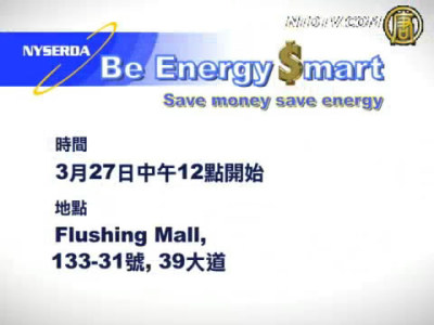 【新唐人2010年3月12日訊】Be Energy Smart省錢節能活動,3月27日中午12點開始,地點:Flushing Mall 133-31號,39大道。