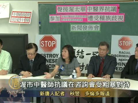 【新唐人2010年4月2日訊】安省中醫立法所引發的衝突似乎還在升級。一週前在渥太華參加安省中醫立法“註冊條例草案”諮詢會的中醫師,今天(4月1日)她專程來到多倫多,抗議自己和先生在會場受到了不公正對待。