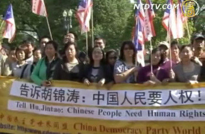 【新唐人2010年4月13日訊】4月12日,核高峰會的第一天,各方人士紛紛來到華盛頓DC,從不同角度抗議中共,並呼籲美國政府積極支持中國的人權、民主。中國民主黨世界同盟主席王軍:“中國人民要求結束中國共產黨的一黨專制。”週一下午,來自紐約的一百多名中國民主黨成員聚集在白宮附近拉法耶公園,呼籲結束中共一黨專制,也呼籲國際社會關注中共對民眾的迫害。中國民主黨世界同盟主席王軍:“我們要表達中國人民要求民主的心聲,希望美國政府和國際社會關注共產黨迫害中國人民這一慘痛的局面,另外也希望關注中國民主化的進程。”前來抗議的還有來自國內的訪民。上海訪民胡燕:“在國內我們上訪了五年,也沒有得到任何結果。”胡燕的住房因為上海舉辦世博會而遭到當局強拆。求告無門、飽受迫害之下,她最近來到美國,公開抗議,揭露中共的腐敗。上海訪民胡燕:“今天就是胡錦濤參加核峰會,在華盛頓,所以我今天到華盛頓來抗議。”當天,也有美國民眾來到白宮進行抗議,包括曾在2008年奧運會開幕前,在天安門廣場為法輪功請願的默洪尼。基督教守衛聯盟主任默洪尼(Patrick Mahoney):“我們在這裡想說,奧巴馬總統,當你和胡(錦濤)會談的時候,我們懇請你,為了社會的公正站出來,為了人權站出來。”新唐人記者王凱迪、蔣彥華盛頓DC報導。