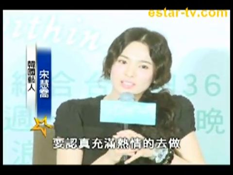 大家好,很高興estar娛樂新幹線又和您見面了,我是盈盈。南韓女明星宋慧喬(wmv 視頻下載)12號抵達臺灣,宣傳新戲[他們的世界],此次來台只停留二十四小時,更讓大批媒體和粉絲緊抓不放,同時她還透露剛接拍了王家衛的新戲[一代宗師],進軍華語電影市場,未來幾年會專心工作,原本讓人浮想聯翩的新戀情會否開花結果,看來這下答案已經出爐了,好下面來看一下。