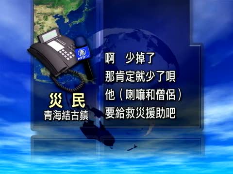 結古鎮災民:「啊,少掉了那肯定就少了唄。他(喇嘛和僧侶)要給救災援助吧,啊,食油還有那個麵粉、大米那