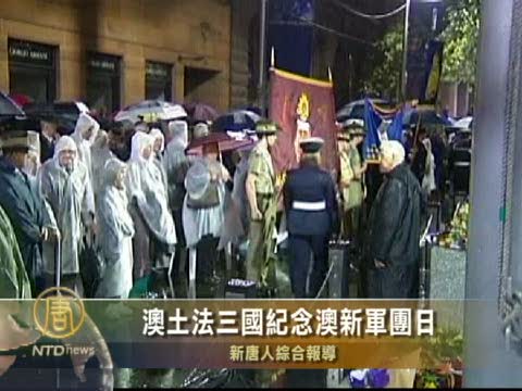 【新唐人2010年4月25日訊】星期日(4月25號)是澳大利亞和新西蘭的澳新軍團日(Anzac Day)。在澳大利亞、土耳其加里波利(Gallipoli)和法國維爾斯•布里頓紐克斯(Villers-Bretonneux)等地,數千名退役官兵和領袖到場紀念在第一次世界大戰中陣亡的數千將士。
