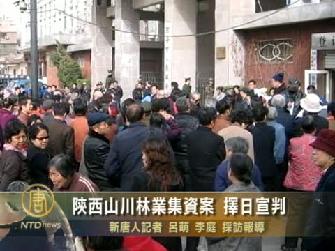 【新唐人2010年4月26日訊】陝西山川林業公司被控非法吸金6億元案,在拖了二年多之後,近日西安市中級法院終於開庭審理,在經過三天的庭審後,法官對這起公訴案以證據不足、事實不清爲由,並沒當庭做出判決,表示擇日宣判。