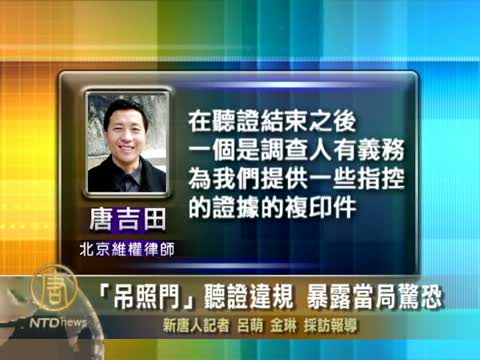 唐吉田:“在聽證結束之後,一個是調查人有義務為我們提供一些指控的證據的複印件,他沒有法律依據,不給,非常武斷的拒絕”