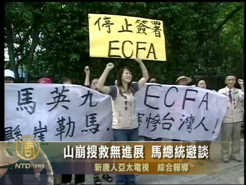 【新唐人2010年4月27日訊】國道三25日下午傳出山崩意外,當時正在辯論ECFA的總統馬英九,一直到晚上8:30才趕到現場,看到國道邊坡因為不明原因崩落,直說毛毛的,經過一夜搜救,有家屬痛批政府救災速度太慢,馬總統早上到高雄參加臺船新船命名儀式,但是被記者詢問時,或許是喜事的場合,馬總統不再談國道山崩意外。