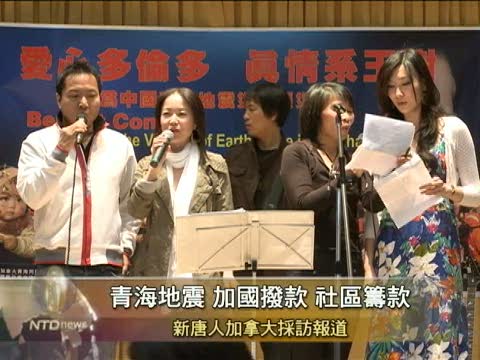 青海同鄉會等十幾個團體日前在士嘉寶的華人商場舉辦了兩場慈善義演,共籌到1萬5千加元。捐款將通過加拿大紅十字會遞交給中國紅十字會,用於玉樹地區的災後重建。活動組織者非常感謝社區的大力支持。