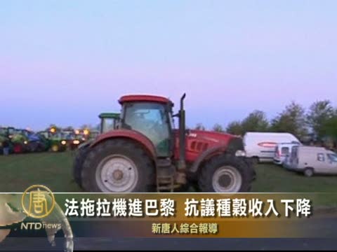 【新唐人2010年4月27日訊】星期二(4月27日),在歐盟農業專員喬洛斯(Dacian Ciolos)到訪巴黎前夕,法國的谷物種植者駕駛著拖拉機在巴黎舉行抗議活動,表達自己對收入下降的不滿,並希望得到政府的幫助。