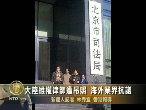 【新唐人2010年4月30日訊】香港的中國維權律師關注組、臺北律師公會人權委員會及美國的中國律師之友組織,日前發表聯合聲明,對北京市司法局擬吊銷唐吉田和劉巍律師的執業證書表示強烈關注。維權律師關注組主席何俊仁擔憂弱勢群體將失去抗辯的基本權利。