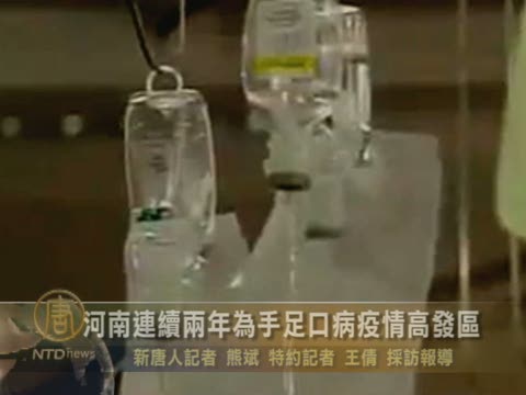 【新唐人2010年4月30日訊】中國河南手足口病連續兩年都是疫情高發區,今年疫情更為嚴峻,醫院人滿為患,有醫師透露,收治的患兒較去年暴增三倍,目前新藥缺貨,價格昂貴。