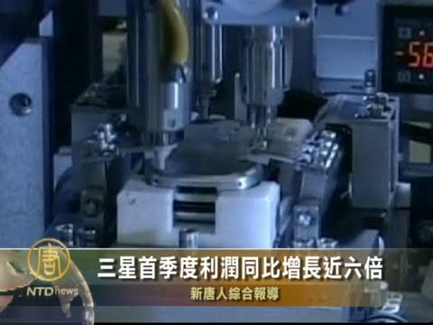 【新唐人2010年4月30日訊】韓國三星電子星期五(30日)公布,公司上季度的利潤接近40億美元,與去年同比增長588%,目前,公司總資產超過1070億美元,預計本季度的利潤將刷新記錄。