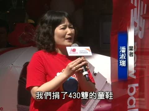 【新唐人2010年5月1日訊】藝人「哈林」庾澄慶以世界展望會公益大使身份,到臺北西門町接受知名運動品牌捐贈童鞋,把愛散播給台灣偏遠地區兒童。