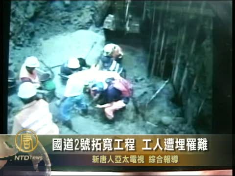 【新唐人2010年5月3日訊】星期日(5月2日),台灣國道機場系統交流道拓寬工程,北二高南下54.3公里處發生土石崩塌意外,一名工人被崩落的土石掩埋,被救出後送醫不治身亡。目前,施工單位已經覆蓋帆布,以防災情繼續擴大。