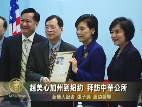 【新唐人2010年5月8日訊】美國首位華裔女國會議員趙美心,今天(5月7日)從加州到紐約城市大學參加5月亞裔傳統月活動的主講嘉賓,下午拜訪紐約中華公所,受到社區僑領歡迎,請看報導。