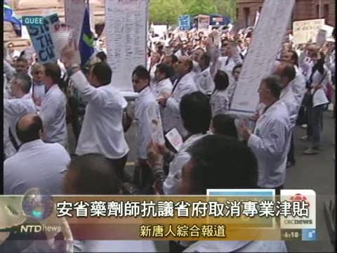 【新唐人2010年5月8日訊】今天,加拿大安省大約1百名藥劑師在省議會大樓外示威,抗議省府計劃取消藥廠向藥房提供專業津貼。
