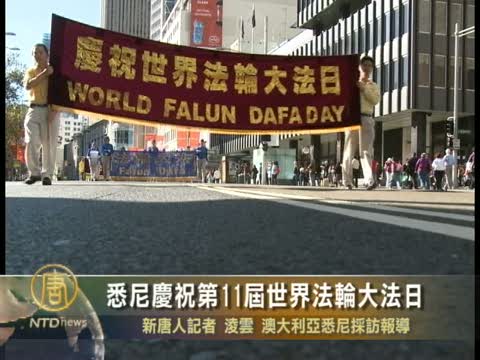 【新唐人2010年5月9日訊】今年的5月13日是第11屆「世界法輪大法日」,也是法輪功傳出18週年。為慶祝這一節日的到來,以及表達他們對法輪功創始人李洪志先生的祝賀與感激之意,悉尼法輪功學員,於5月8日在市中心舉行了盛大的慶祝活動。