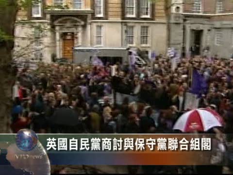 【新唐人2010年5月9日訊】星期六,英國自由民主黨議員開會討論與保守黨聯盟組閣。會議同時,大約一千名抗議者聚集在會場之外,要求徹底改革選舉系統,並將此作為組閣交易的條件。