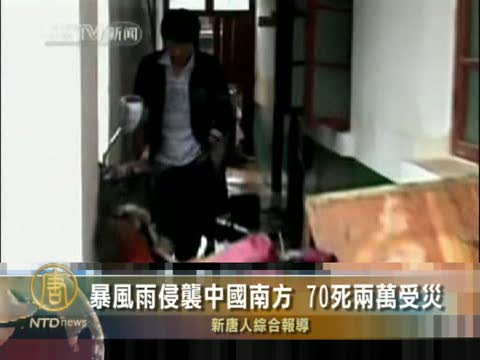 【新唐人2010年5月9日訊】中國南方近幾天遭遇暴風雨的侵襲,引發山洪暴發和山體滑坡。據不完全統計,已有至少70人遇難,超過兩萬人受災。
