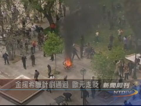 【新唐人2010年5月9日訊】希臘債臺高築。希臘政府日前宣佈,公共債務佔國內生產總值的比例為113%,近兩倍於歐盟的規定。其財政赤字佔國內生產總值的比例高達12.7%。為減少赤字,以換取歐盟和國際貨幣基金組(IMF)1,100億歐元的援助貸款,希臘政府宣佈了一項涉及金額約300億歐元的緊縮措施,其中包括包括大幅減少公共部門的薪資、降低社會福利、上調增值稅等。這一舉措引發了民衆的強烈不滿,5月5日,希臘爆發了全國性的大罷工。