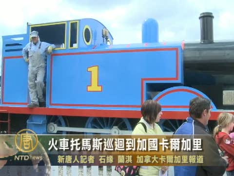 【新唐人2010年5月10日訊】風靡全球的動畫形象藍色蒸汽小火車託馬斯五月九號巡迴到加拿大卡爾加裏市,繼續它的2010年65歲慶典之旅。請看來自卡爾加裏的報導。