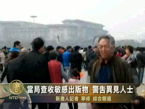 【新唐人2010年5月11日訊】六四二十一週年紀念日臨近,中共當局加緊了對天安門的警戒,天安門廣場附近售賣涉及天安門事件、文革及「四人幫」等話題的相關書籍和音像製品的專櫃被查,多位異見人士和民運人士又被當局傳喚和警告。