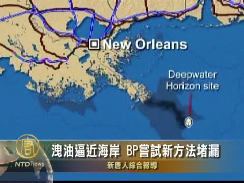 【新唐人2010年5月11日訊】儘管三個星期來,多方一直在緊急行動,星期一(5月10日),美國墨西哥灣泄露的石油正在向路易斯安那州的沿岸逼近。同時英國石油公司BP表示,正在嚐試採用幾種新的方法,阻止墨西哥灣鑽井平臺爆炸所造成的漏油事故。