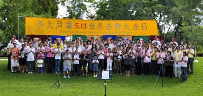 5月9日清晨,泰國法輪功學員來到是樂園,打開了“普天同慶5.13世界法輪大法日”“恭祝師尊生日快樂”等橫幅,隨著祥和的煉功音樂集體煉功;合唱“師恩頌”“法輪大法好”等歌曲,展現大法的美好,慶祝第十一屆世界法輪大法日。