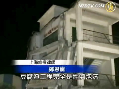 【新唐人2010年5月12日訊】汶川大地震2週年了,當年地震不預報和豆腐渣工程壓死很多無辜的學生,相關責任人都沒被追究,引起民間憤慨,上海維權律師鄭恩寵表示,中國的GDP的數字是虛假的,全國到處都是豆腐渣工程,所以當局不願公布真相。
