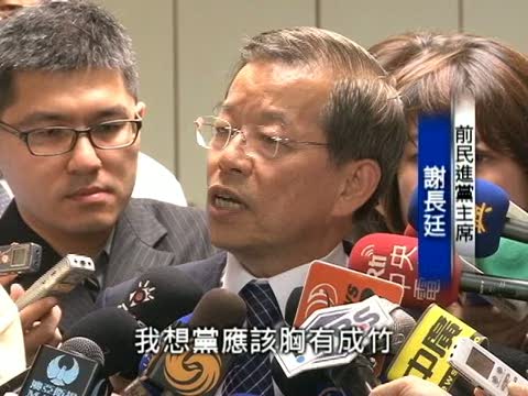 前民進黨主席謝長廷:「我想黨應該胸有成足,我還當過兩次黨主席,所以我知道很多事情還沒成熟、還沒定案不方便宣佈,因為黨有一個方向。有信心,因為就整個社會的情勢看、政黨的態勢看,應該都不會有問題,會有適當的人選上戰。」
