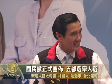 【新唐人2010年5月13日訊】國民黨中常會12號正式通過年底五都市長選舉提名人名單,分別是臺北市郝龍斌、新北市朱立倫、大臺中胡志強、大臺南郭添財,以及大高雄黃昭順等,並在晚間召開記者會讓五人一一發表競選政見,由黨主席馬英九授旗後,宣示全部就戰鬥位置。